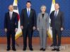 강경화 외교부 장관(오른쪽 두 번째)과 데이비드 스틸웰 미국 국무부 동아시아·태평양 담당 차관보(첫 번째), 키이스 크라크 미 국무부 경제차관(세 번째), 해리 해리스 주한미국대사가 6일 서울 종로구 외교부 청사에서 기념촬영을 하고 있다. /문호남 기자 munonam@ |
