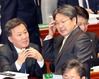 강기정(오른쪽) 청와대 정무수석이 6일 오전 국회에서 열린 예산결산특별위원회 전체회의가 오후로 연기되자 회의장을 나서며 황서종 인사혁신처장과 대화하고 있다. /연합뉴스 |