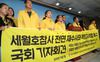박주민 더불어민주당 의원과 4.16 세월호참사 진상규명 및 안전사회 건설을 위한 피해자 가족협의회 회원들이 지난 5일 국회 정론관에서 ‘세월호 참사 전면 재수사와 책임자 처벌’을 촉구하는 기자회견을 하고 있다. (사진=연합뉴스) |
