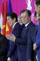 문재인 대통령이 지난 4일 태국 방콕 임팩트 포럼에서 열린 역내포괄적경제동반자협정(RCEP) 정상회의에서 아베 신조 일본 총리 등 참석자들과 기념촬영 후 박수치고 있다. 방콕=연합뉴스 |