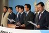 우원식 더불어민주당 의원 및 참석자들이 7일 오전 서울 여의도 국회 정론관에서 '한미 간 상호 호혜적 방위비 분담금 촉구 기자회견'을 갖고 있다. 뉴스1 |
