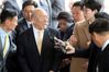 지난 4월 8일 전두환 전 대통령(왼쪽 세 번째)이 법정에 들어서기 전 취재진이 심경을 묻자 “왜 이래”라며 답변을 거부하고 있다. 광주=남정탁 기자 |