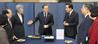 文대통령, 부산 벡스코서 국무회의 - 문재인 대통령이 12일 부산 벡스코에서 열린 현장 국무회의에 앞서 참석자들과 대화하고 있다. 왼쪽부터 조성욱 공정거래위원장, 오거돈 부산시장, 강경화 외교부 장관, 문 대통령, 이낙연 총리, 홍남기 경제부총리, 이정옥 여성가족부 장관. /연합뉴스 |