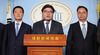 13일 오후 국회 정론관에서 열린 더불어민주당 입당 기자회견에서 김용진 전 기획재정부 제2차관(가운데)이 인사말을 하고 있다. 왼쪽부터 김학민 전 순천향대학교 산학협력부총장, 김 전 차관, 황인성 청와대 시민사회수석/연합뉴스 |