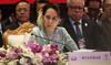 아웅산 수지 미얀마 국가자문역이 4일(현지시간) 태국 방콕에서 열린 아세안+3 정상회의에 참석해 아베 신조 일본 총리의 발언을 듣고 있다. 방콕|AP연합뉴스 |