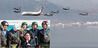 김정은 2년 만에 전투비행 참관… 호위받는 전용기 ‘참매-1호’ 북한 김정은 국무위원장의 전용기 ‘참매-1호’가 북한이 보유한 전투기 6대의 엄호를 받으며 원산갈마비행장 상공을 통과하고 있다고 노동신문 등이 16일 보도했다. 김 위원장이 북한의 ‘에어쇼’인 전투비행훈련을 참관한 것은 2017년 이후 2년 만이다(위 사진). 김 위원장이 팔짱을 낀 채 전투기 조종사 등 관계자들을 격려하고 있다. 조선중앙TV 화면 캡처 |