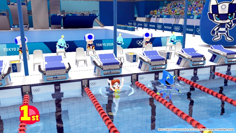 여기에 이번 '마리오와 소닉 AT 2020 도쿄 올림픽'은 스위치로 등장했기에 체감형 조작에도 신경을 많이 썼는데, 조작이 좀 부담된다. 기대 이상의 손맛을 제공하는 종목도 있지만, 이해에만 많은 시간이 걸리는 직관적이지 못한 종목도 많다.