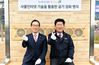 이병호(왼쪽) 한국농수산식품유통공사 사장과 강인규 나주시장이 지난 19일 호수공원 공기정화벤치 설치 후 기념촬영하고 있다. 한국농수산식품유통공사 제공 |