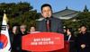 황교안 자유한국당 대표가 20일 오후 청와대 분수대에서 '총체적 국정실패 규탄을 위한 단식투쟁'에 앞서 대국민호소문을 발표하고 있다. 사진=서동일 기자 |