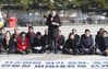 한국당은 문 정권을 재차 압박하기 위해 청와대 앞에서 현장 최고위를 열었다고 설명했다. 한국당 지도부는 ‘지소미아 파기 철회·공수처법 포기·연동형 비례대표제 선거법 철회’라고 쓰인 긴 홍보물 앞 맨바닥에 앉는 등 청와대 앞 ‘거리 최고위’를 진행했다. 황 대표는 이날 오전 3시30분부터 청와대 앞 분수대광장으로 나와 ‘거리 농성’에 나선 상태였다. 모자와 마스크를 쓰고 외투를 걸친 차림이었다. 별 다른 시설 없이 작은 책상과 깔판 뿐이었다. 현장 최고위에선 황 대표의 단식 투쟁을 응원하는 지지자들의 목소리와 박수 소리가 적지않게 들려왔다.