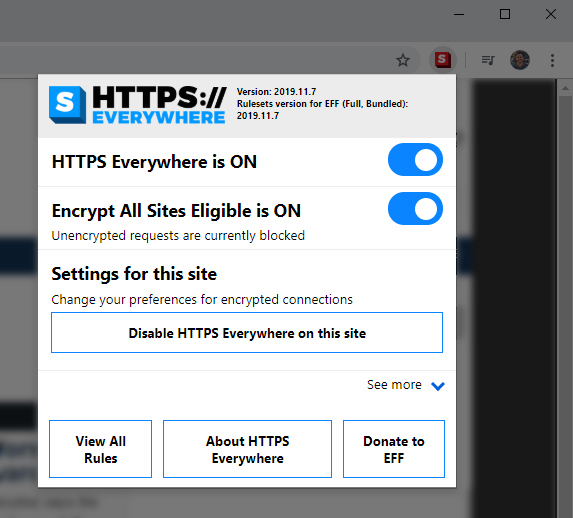 문제를 해결할 방법은 있다. 크롬 확장 프로그램인 HTTPS 에브리웨어를 사용하면 된다. 그러면 안전하지 못한 사이트에 HTTPS가 적용되고, 사용자가 전송하는 데이터가 다른 사람이 엿보지 못하는 안전한 상태가 된다. ETF(Electronic Frontier Foundation)와 토르 프로젝트(Tor Project)가 개발했으며, 무료로 사용할 수 있다.