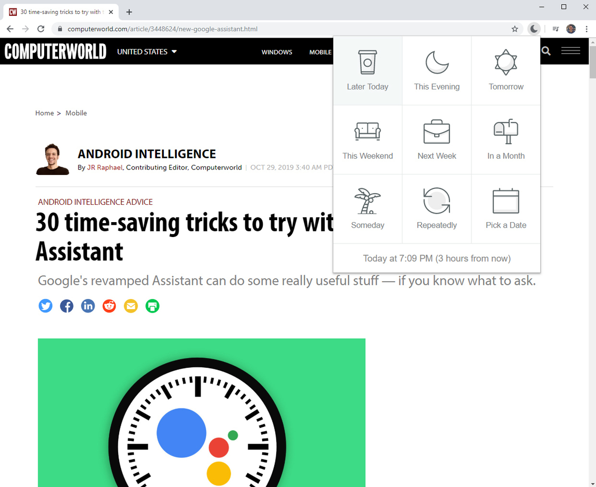 - ‘탭 스누즈(Tab Snooze)’는 이메일처럼 불필요한 탭을 없앴다가, 지정한 날짜와 시간에 되돌려주는 도구다. 즉 사용자는 모든 탭을 열어둘 필요 없이, 사용하지 않는 탭을 ‘스누즈(일시 정지)’한 후, 추후 필요하다고 예상되는 시간에 다시 나타나도록 만들 수 있다.