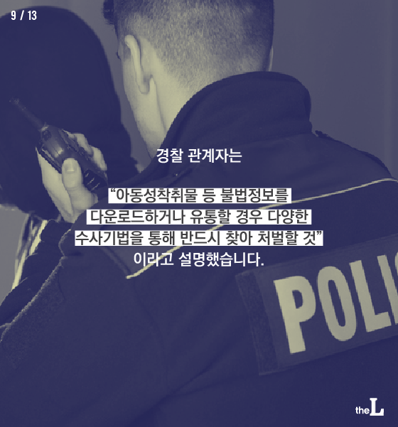 경찰 관계자는 “아동성착취물 등 불법정보를 다운로드하거나 유통할 경우 다양한 수사기법을 통해 반드시 찾아 처벌할 것”이라고 설명했습니다.