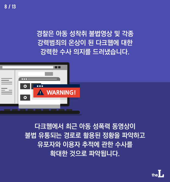 경찰은 아동 성착취 불법영상 및 각종 강력범죄의 온상이 된 다크웹에 대한 강력한 수사 의지를 드러냈습니다.