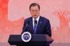 문재인 대통령이 23일 청와대 본관에서 열린 리센룽 싱가포르 총리 내외 공식방문 오찬에 참석해 건배사를 하고 있다.(사진=뉴시스) |