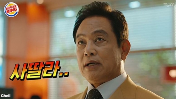 버거킹 모델로 활동 중인 배우 김응수. 버거킹의 마케팅은 그야말로 성공적이었다. 사딸라 광고에 이어 해당 광고의 유튜브 조회 수는 현재 680만을 돌파했다. 이전 편 사딸라 광고의 조회수는 약 400만 정도였다. 대중들은 반응도 신선했다. 영상의 댓글에는 “광고를 들으려고 클릭해서 들어온 적은 첨이네”, “장난삼아 얘기했던게 실제로 이어지네” 등 좋은 반응이 쏟아졌다.