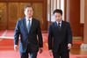 문재인 대통령이 지난 7일 청와대에서 예방한 아시아·태평양 지역 뉴스통신사들의 교류 협력체 아태뉴스통신사기구(OANA) 대표단을 접견하기 위해 윤도한 국민소통 수석과 함께 이동하고 있다. |청와대사진기자단 |