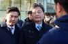 유승민·지상욱 의원이 26일 오전 서울 청와대 분수대 앞에서 7일째 단식농성을 이어가고 있는 황교안 자유한국당 대표 방문을 마친 후 농성장을 나서고 있다./뉴시스 |