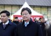 26일 오전 7일째 단식투쟁을 이어가고 있는 자유한국당 황교안 대표의 청와대 앞 농성장을 찾은 바른미래당 유승민(오른쪽) 의원이 황 대표와 대화를 마친 후 농성장을 나서고 있다. 연합뉴스 |