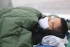 닷새째 단식투쟁을 이어가고 있는 황교안 자유한국당 대표가 24일 오후 서울 종로구 청와대 분수대 앞에서 열린 비상의원총회에 마련된 천막에 몸져 누워 있다. 뉴스1 |