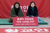 자유한국당 정미경(왼쪽)·신보라 최고위원이 28일 오전 청와대 앞 황교안 대표 단식농성장에서 동조 단식을 하고 있다. 연합뉴스 |