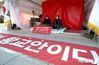 자유한국당 정미경 최고위원과 신보라 최고위원이 28일 오전 서울 청와대 사랑채 앞에서 동반 단식농성을 시작하고 있다. 황교안 대표는 단식 8일차인 지난 27일 밤 병원으로 후송됐다. |