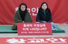 자유한국당 정미경(왼쪽)·신보라 최고위원이 28일 오전 청와대 앞에서 단식을 시작했다. 연합뉴스 |