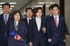 나경원 자유한국당 원내대표(가운데)와 최고위원들이 28일 국회에서 열린 최고위원회의에 입장하며 대화하고 있다. (사진=연합뉴스) |
