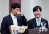 '윤창호법(도로교통법 개정안)'으로 2019 대한민국 최우수법률상 및 국감 스코어보드대상 대상을 수상한 하태경 바른미래당 의원(오른쪽)이 윤씨의 친구 이영광씨와 함께 수상 소감을 하고 있다. /사진=홍봉진 기자 |