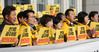 심상정 정의당 대표와 의원, 당원들이 28일 오전 서울 여의도 국회 본청 앞에서 열린 ‘4당 합의 패스트트랙법 즉각 통과 정의당 비상행동’ 선포식에서 구호를 외치고 있다.(사진=연합뉴스) |
