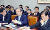 노영민 대통령 비서실장이 29일 국회 운영위원회 전체회의에 질의에 답변하고 있다. 왼쪽부터 김상조 정책실장, 노 비서실장, 정의용 국가안보실장. |연합뉴스 |
