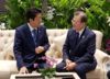 문재인 대통령과 아베 신조 일본 총리가 지난 4일 오전(현지시각) 태국 방콕 임팩트포럼에서 아세안+3 정상회의 전 환담을 하고 있다./청와대 제공 |