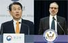 제11차 한미 방위비분담 특별협정(SMA) 제3차 회의가 지난 19일 파행 끝에 조기 종료된 가운데 정은보 한국 측 협상 수석대표(왼쪽)가 외교부 브리핑룸에서 정부 입장과 협상 상황 등을 발표하는 모습. 오른쪽은 드하트 미국 측 수석대표.(사진=연합뉴스 제공) |