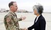 강경화 외교부 장관이 9월 20일 경기도 평택 캠프 험프리스를 방문해 로버트 에이브럼스 한미연합사령관 겸 주한미군사령관과 인사하고 있다. 연합뉴스 |