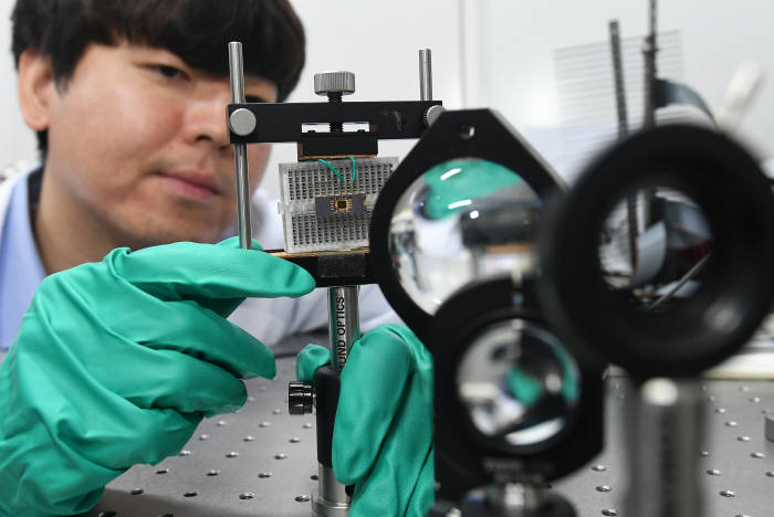 KIST 차세대반도체연구소 연구원이 Ⅲ-Ⅴ족 화합물 반도체를 이용한 센서 소자로 영상화 작업을 하고 있다.