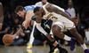 댈러스 루카 돈치치(왼쪽)가 2일 미국 캘리포니아주 로스앤젤레스 스테이플스센터에서 열린 NBA 정규리그 경기에서 LA 레이커스 르브론 제임스와 공을 다투고 있다. 로스앤젤레스=AP연합뉴스 |