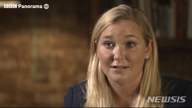 [런던=AP/뉴시스]영국의 BBC 방송 화면을 캡처한 사진에 미국 여성 버지니아 로버츠 주프레가 2일(현지시간) 영국에서 방송되는 BBC 파노라마 프로그램에서 인터뷰를 하고 있다. 주프레는 자신이 17세였을 때 영국 엘리자베스 2세 여왕의 셋째 아들인 앤드루(59) 왕자와 성관계를 강요당한 인신매매 피해자였다고 주장했다. 주프레는 지난 8월 수감 중 자살한 성범죄자 제프리 엡스타인에게 인신매매되어 런던에서 한 번을 포함해 앤드루 왕자와 세 번의 성관계를 갖게 된 경위를 묘사하고 있다. 2019.12.03.