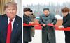 나토(NATO·북대서양조약기구) 정상회의 참석차 영국을 방문 중인 트럼프(왼쪽) 대통령이 3일(현지 시각) 런던 주재 미국 대사관에서 기자회견을 갖고 있다. 트럼프 대통령은 이날 “우리가 (북한에 대해) 무력을 사용해야 한다면 사용할 수도 있다”고 했다. 오른쪽은 김정은 북한 국무위원장이 지난 2일 백두산 삼지연군 읍지구 준공식에 참석해 준공테이프를 끊고 있는 모습. 김정은은 최근 노동당 고위 간부들에게 “굶어 죽더라도 남조선에 구걸하지 말라”고 말한 것으로 알려졌다. /AP·조선중앙통신 연합뉴스 |