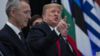 도널드 트럼프 미국 대통령이 4일 영국 왓퍼드의 그로브 호텔에서 옌스 스톨텐베르크 나토 사무총장과 함께 북대서양조약기구(NATO) 회원국 실무오찬에 참석해 제스처를 취하고 있다. 그는 이날 유럽 동맹들의 방위비 분담금 증액을 거듭 압박하면서 방위비와 무역문제의 연계 가능성을 시사했다./AP 연합뉴스 |