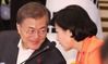 지난 2017년 11월 28일 문재인 대통령이 청와대 영빈관에서 열린 대한민국 혁신성장 전략회의에서 당시 더불어민주당 당대표였던 추미애 의원과 이야기하는 모습. 연합뉴스 |