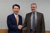 정은보 한미 방위비분담협상대사와 제임스 드하트 미 국무부 선임보좌관이 3일(현지시간) 미 국무부 청사에 마련된 협상장에서 악수하고 있다. (사진=주미 대사관 제공) |