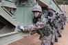 교량대대 장병이 출동에 앞서 장비를 차량에 고정하고 있다. 박용한 |
