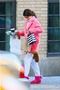 공개된 사진 속 수리 크루즈는 아빠를 빼닮은 외모를 자랑하며 이동 중인 모습. 핑크 코트와 핫핑크 어그 부츠가 인상적이다.