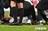 [OSEN=부산, 최규한 기자]전반 한국 김승대가 홍콩 골키퍼와 충돌해 부상을 입은 뒤 고통스러워하고 있다. /dreamer@osen.co.kr |