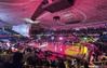 이달 11일 SK나이츠와 KT소닉붐의 경기가 열린 잠실학생체육관. 경기장 상공에 SK나이츠 홀로그램이 구현됐다./SK텔레콤 제공 |