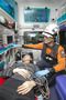 KT는 소방청, 세브란스 병원과 함께 119 신고부터 구급차, 병원 응급실까지 이어지는 응급의료체계의 전 단계를 5G와 ICT 기술로 스마트하게 바꾸는 응급의료 서비스를 개발한다고 12일 밝혔다. 사진은 119 구급차 안에서 구급대원이 5G AR 글래스와 360도 카메라로 세브란스 병원 의료진과 대화하며 환자를 돌보는 모습./2019.12.12 사진제공=KT