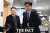 맞고소를 위해 강남경찰서를 찾은 김건모의 소속사 건음기획 손종민 대표(왼쪽)와 법무법인 서평 고은석 변호사 |