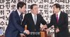 문희상 국회의장(왼쪽 둘째) 주재로 13일 낮 국회의장실에서 열린 더불어민주당과 자유한국당, 바른미래당 등 교섭단체 3당 원내대표 회동에서 이인영 더불어민주당 원내대표와 심재철 자유한국당 원내대표가 악수하고 있다. / 권호욱 선임기자 biggun@kyunghyang.com |
