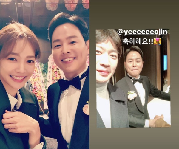 또한 김현우, 이여진 부부의 결혼 소식이 전해졌을 때 기사를 통해 이를 알았다며 섭섭함을 내비쳤던 SBS 김윤상 아나운서도 자신의 SNS에 “축하해요”라며 김현우와 찍은 사진을 게재했다.