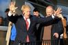 보리스 존슨 영국 총리가 14일(현지시간) 영국 잉글랜드 북부의 더럼 세지필드를 방문해 유권자들에게 손을 흔들고 있다. 이 지역은 과거 노동당의 텃밭으로 불렸지만 이번총선에서 보수당 지지로 돌아섰다. 로이터뉴스1 |